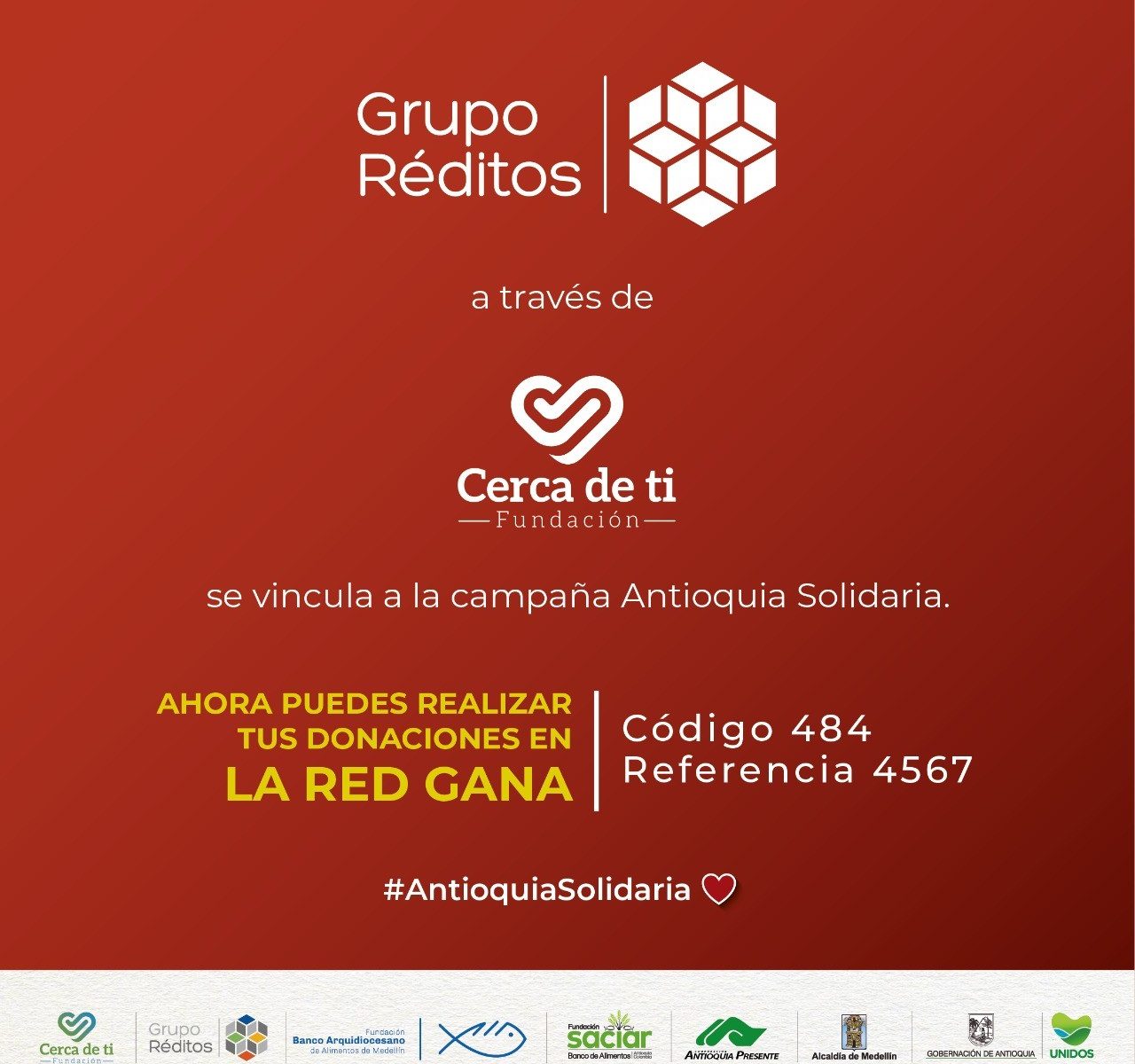 • El nuevo canal de donaciones fue habilitado, gracias a la vinculación del Grupo Réditos, a través de la Fundación Cerca de Ti con la campaña Antioquia Solidaria.